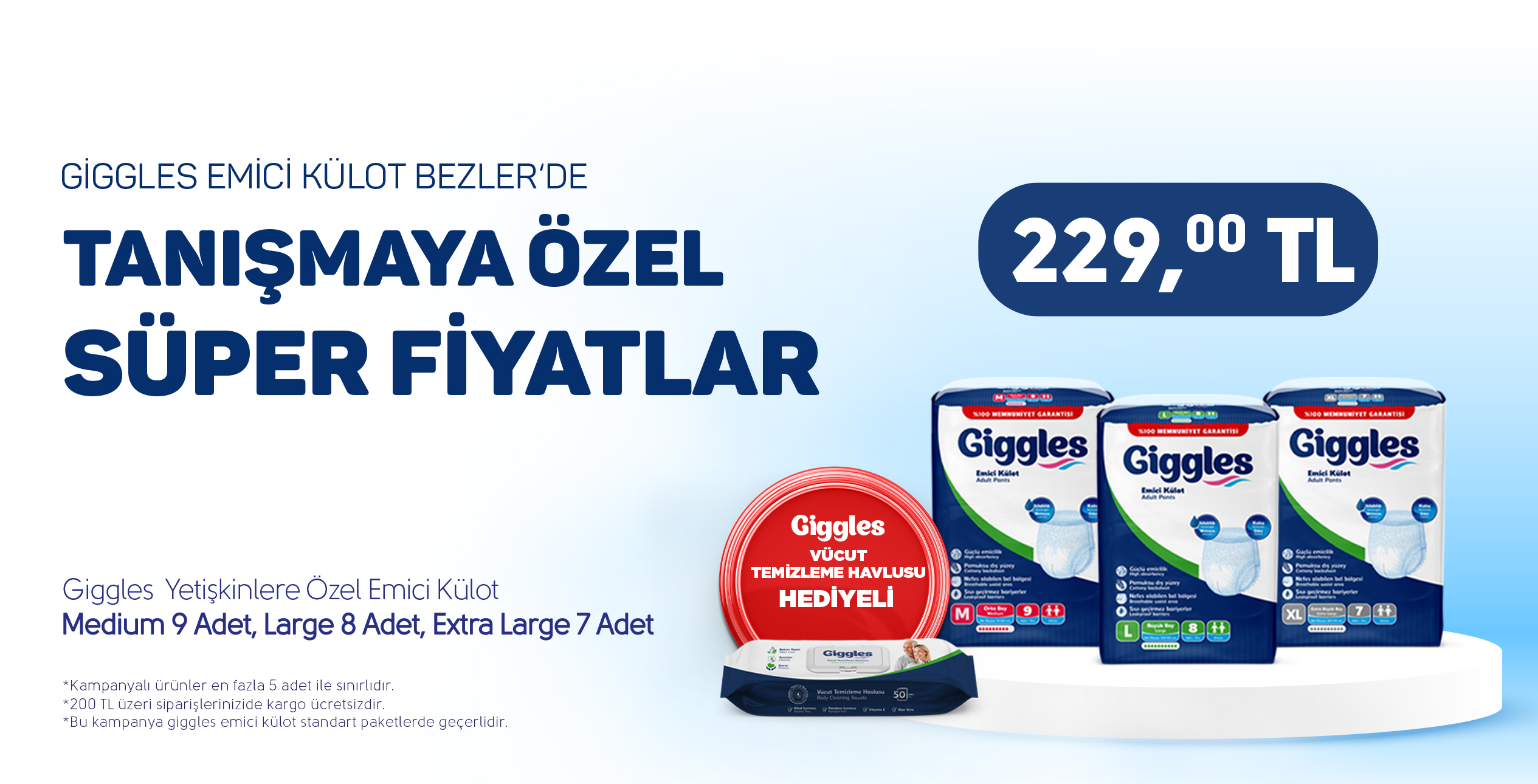 Giggles Yetişkin Emici Külot Medium 9'lu 1 Paket 9 Adet- Giggles Vücut Temizleme Mendili Hediye'li