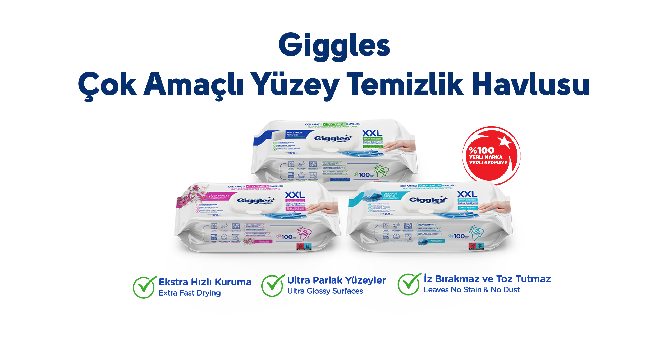 Giggles XXL İz Bırakmayan Yüzey Temizlik Havlusu - (Beyaz Sabun Ferahlığı) 100 Yaprak