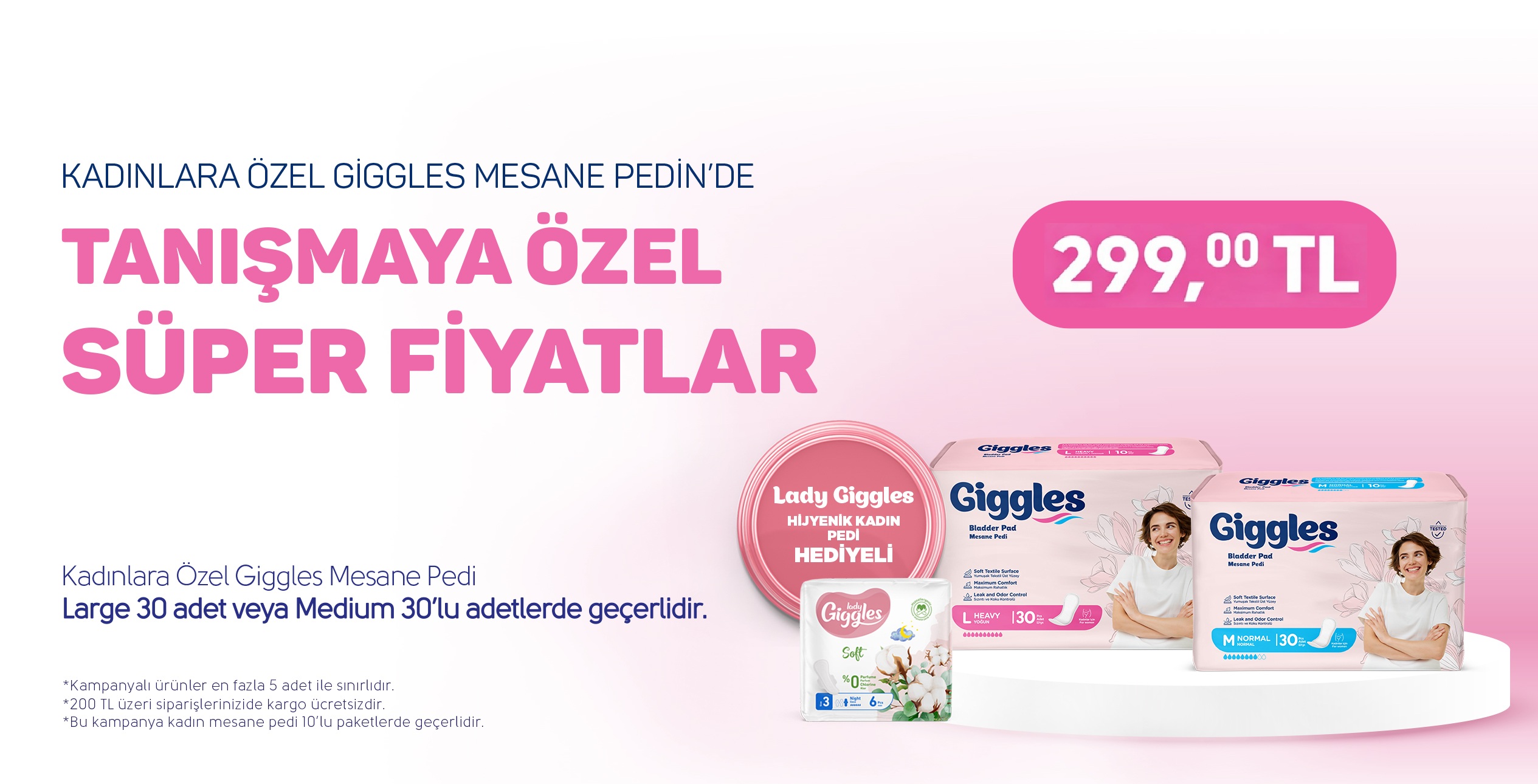Giggles Kadın Mesane Pedi Medium 30 Adet - Lady Giggles Hijyenik Ped ( Gece) Hediye'li