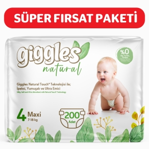 Giggles Natural 4 Numara Maxi Pamuklu Bebek bezi 200 Adet