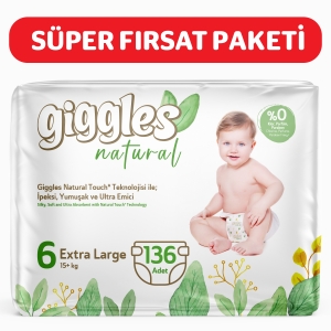 Giggles Natural 6 Numara Junior Plus Pamuklu Bebek bezi 136 Adet
