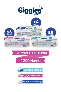 Giggles XXL İz Bırakmayan Yüzey Temizlik Havlusu - (Beyaz Sabun-Çiçek Bahçesi-Okyanus Esintisi) 1200 Havlu