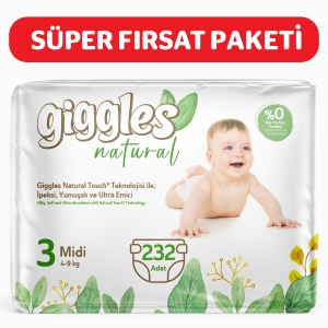 Giggles Natural 3 Numara Midi Pamuklu Bebek bezi 232 Adet
